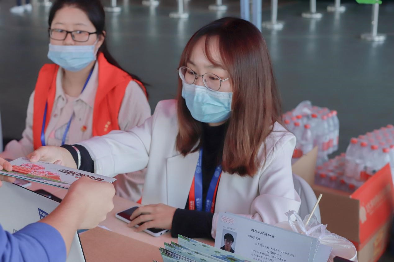 一年一度秋风劲,百里迢迢赴新篇。10月9日上午,大数据与人工智能学院接待了首位前来报道的新生,由此大数据学院2020年迎新工作正式拉开了序幕。老师同学的亲切问候、学长学姐的精心准备,等待着即将到达的2020级大数据学院的新生同学,一切迎新工作都蓄势待发。(图为汪怡老师为学生办理入学手续)上午8点,大数据2002班刘辉同学与父母从家乡淮北抵达了学校,在辅导员汪怡老师的帮助下办理了入校手续并领取了校园卡,随后,在学院志愿者的陪同引导下顺利入住A33栋W202宿舍。刘辉与父母是自驾来到新芜校区的,到达学校大门时,志愿者已经在学校门口了,“刚到学校有问题就找学长学姐,新生群里辅导员老师都会为你解答遇到的困难。”志愿者告诉刘辉。(图为首位前来报道的新生刘辉到达学校)在记者问到为何选报大数据专业时,刘同学表示是兴趣使然,作为学院新开设的王牌专业,大数据的前景非常大。“我要好好学习,争取每年拿奖学金,要考研,不给大学留下遗憾。”在问到大学四年有什么目标时他表现出了坚定的决心。(图为采访大数据学院首位新