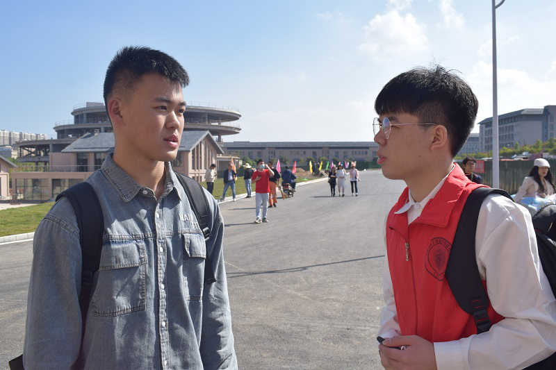 为更好地了解计算机学院&大数据学院20级新生的基本情况,文津新媒体协会记者采访到了来自外省的几位新生。面对未来四年在信工的大学生活,他们每个人的脸上都有着憧憬和期盼,下面跟着小编来看看学弟学妹们对未来的大学生活都有着什么样的感想吧。(图为陈礼健同学接受采访)来自福建省的陈礼健同学在接受采访时有点兴奋和害羞,陈礼健同学报考的专业是计算机方向,据他了解这个专业的就业前景非常广泛,并且是我校的王牌专业之一。在谈到对即将开始的大学生活有什么规划时,陈同学变得严肃起来,他认真地表示会在大学期间多学习专业知识并积极参加学科竞赛,为将来工作或考研做好充分的准备,与此同时他希望能够加入学校的篮球队,在球场上挥洒青春的力量。(图为陈礼健同学与父亲合影留念)来自大数据与人工智能学院的谢环环也是此次的采访对象之一,谢环环同学来自距离芜湖比较远的湖南衡阳,在被问到作为第一届来到新芜校区的人工智能专业的学生是什么感想时,谢同学认为这是一件非常值得被纪念的事情,并且经过他和父母的实地考察,谢环环表示他们很满意学校的