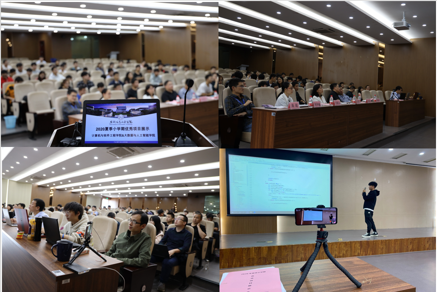 2020年9月23日,在安徽信息工程学院文津校区东二503报告厅,举行了2020年夏季小学期优秀项目展示会,受疫情影响,本次优秀项目展示会通过参赛队伍现场+学生在线直播参与的方式进行,参加本次优秀项目展示会的有科大讯飞高教人才培养业务线培养运营部总监马季、科大讯飞高教人才培养业务线教育研究院副总监张承云、计算机与软件工程学院&大数据与人工智能学院副院长万家山、计算机与软件工程学院刘华敏副教授、大数据与人工智能教研室高超主任、计算机与软件工程学院&大数据与人工智能学院产学研秘书吴锦华。夏季小学期实施的任课老师、助教以及优秀项目和班级学生的代表。(图为展示会现场)夏季小学期是学院“三学期制”培养模式中的重要组成部分,今年由于受到疫情影响,大一、大二夏季小学期均采用线上教学形式,集中实训课程采用线上教学难度相对来说较大,实施过程中适当增加理论课时、增加直播互动、课堂测试、企业项目汇报流程、qq全天在线等不同形式,进而确保今年夏季小学期顺利展开进行。在老师和同学们的共同努力下,计算机与软件工程学