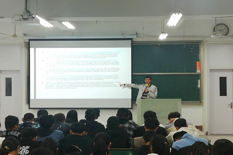 时至初冬,微凛的寒风轻轻拂过安信工,伴随着阵阵冬风,英语协会第五次四级辅导课如约而至。安徽信息工程学院文津英语协会于2019年11月13日晚在西三101进行第五次英语四级辅导课,本次辅导课由国家奖学金获得者吕科主讲。(图为辅导课现场)(图为吕科学长细心讲解)此次辅导课与以往略有不同,由IT学风社协助英语协会共同举办,旨在为同学们营造良好的学习氛围。吕科学长本次主讲18年12月第二套真题卷阅读理解部分,承接了上一次辅导课的中心思想,帮助同学们查缺补漏,为即将到来的四级考试做进一步准备。为同学们更好地备战大学生英语四级考试,吕科学长结合自身在英语学习方面的经验为同学们提出见解。(图为同学们认真听讲)此次讲课为同学们提供了应对四级考试的技巧和方法,使同学们能够更好得应对四级考试。一份耕耘一份收获,成功没有捷径,想要得到一份满意的英语四级考试答卷,要学会改善学习方法,提高学习效率。纵使路途艰难重重,英语协会仍会常伴你们左右。今后,英语协会将继续不忘初心,努力前行,进一步成为学校英语人才培育基地。