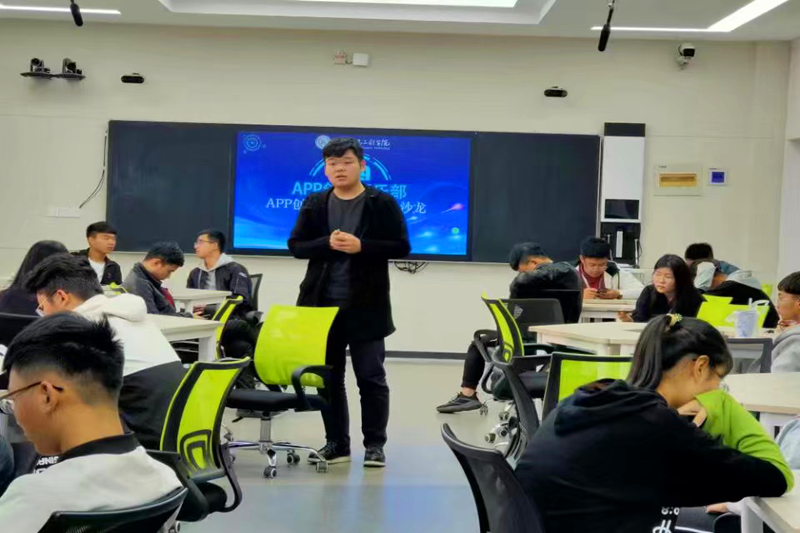为了更好的开展APP创意设计大赛,解决各位同学关于比赛的相关问题。2019年11月11日APP创意俱乐部于东一104智慧教室开展了APP创意设计大赛赛前创意沙龙。本次活动邀请到了程涛、李军新两位学长为大家答疑解惑。(图为李军新学长答疑解惑)在活动上,APP创意设计大赛比赛选手针对在撰写策划案遇到的问题积极向学长求教,在听取参赛选手分享自己的创意及想法后,程涛学长对其进行分析并给出合理的建议,李军新学长的看法也颇具匠心。两位学长特别强调,创意不是指整个软件的创新,也要根据用户刚性需求进行创新。经过学长的指导,参赛选手表示对APP创意设计大赛有了更深入的了解,对比赛有了更强烈的信心。 (图为同学提问)(图为活动结束合照)此次沙龙活动不仅让参赛选手更详细地了解APP创意设计大赛,还让更多更好的创意集结于此。在活动中,同学们踊跃发言,进行了热烈讨论,活动现场气氛十分欢快。APP创意俱乐部做到了真正的寓教于乐,同时期待参赛选手们在比赛中的优异表现,相信第三届APP创意设计大赛又将会是一个创新的盛典